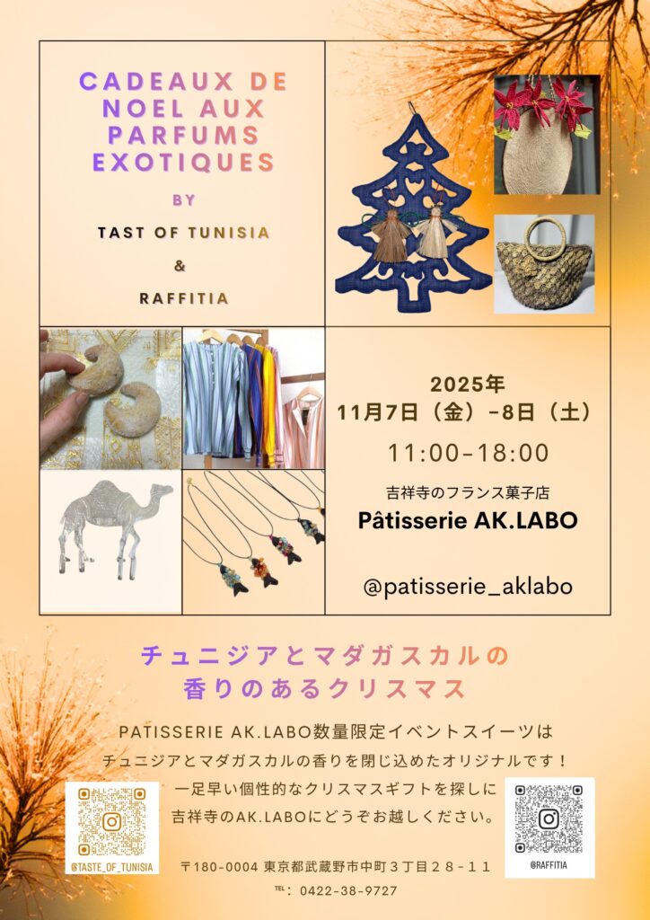 11月7日&8日 【 CADEAUX DE NOEL AUX PARFUMS EXOTIQUES 】 Patisserie AK.LABO (吉祥寺)