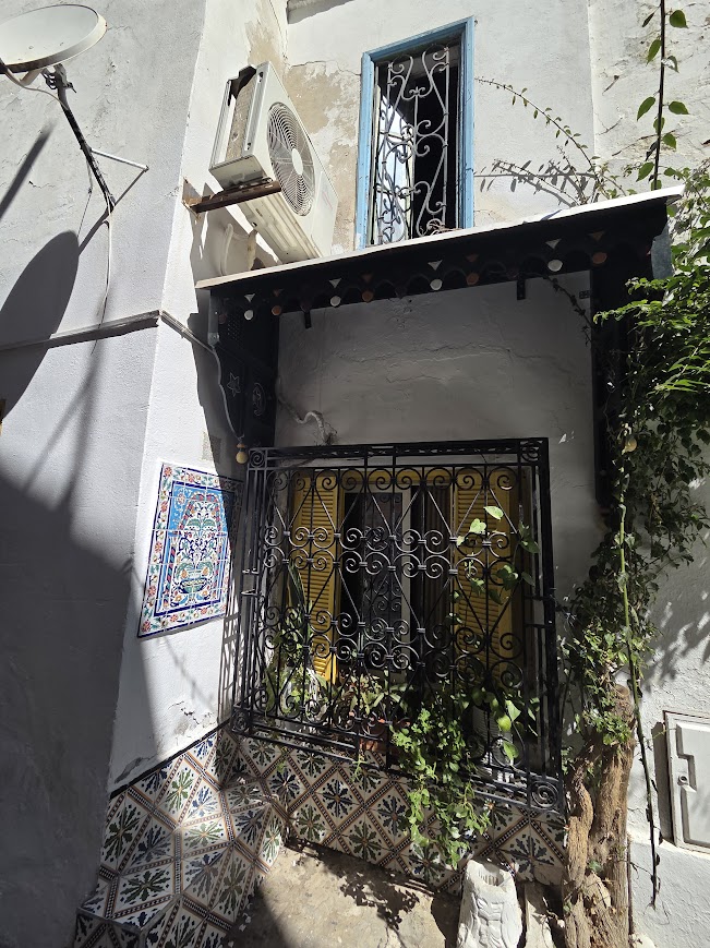 チュニジアらしい、窓の鉄格子、モザイクタイル、扉、、